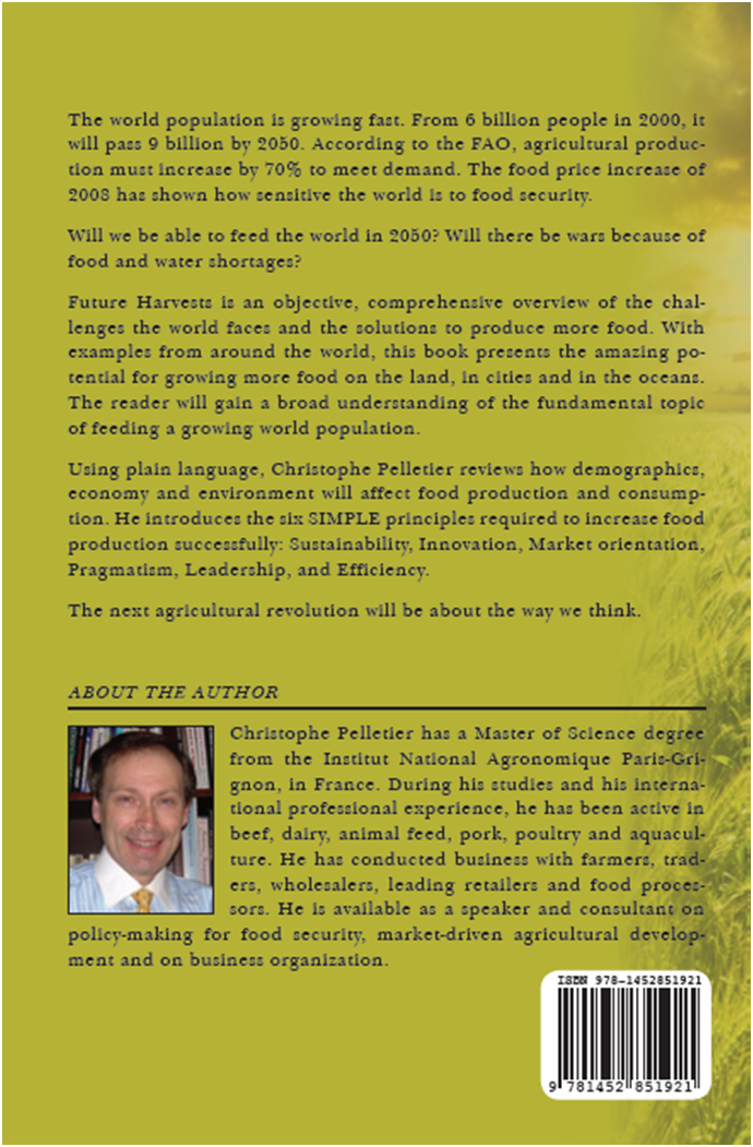I will let you dig further where there is potential. Of course, there are challenges ahead. Climate change will also put yields under pressure. As I indicated, my purpose is mostly to make you think about whether the Earth is maxed out or whether we can still create of world of plenty. The answer will depend greatly on us and on our leaders. Do we want to cultivate the Earth for success or are we going to make pricey mistakes? That was the purpose of We Will Reap what We Sow, my second book, by the way.